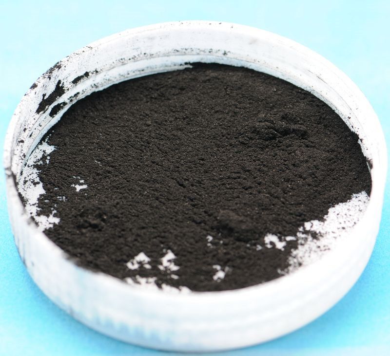 Appearance of black particles or powder, odorless, tasteless, insoluble in general solution.